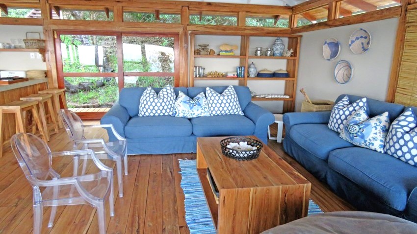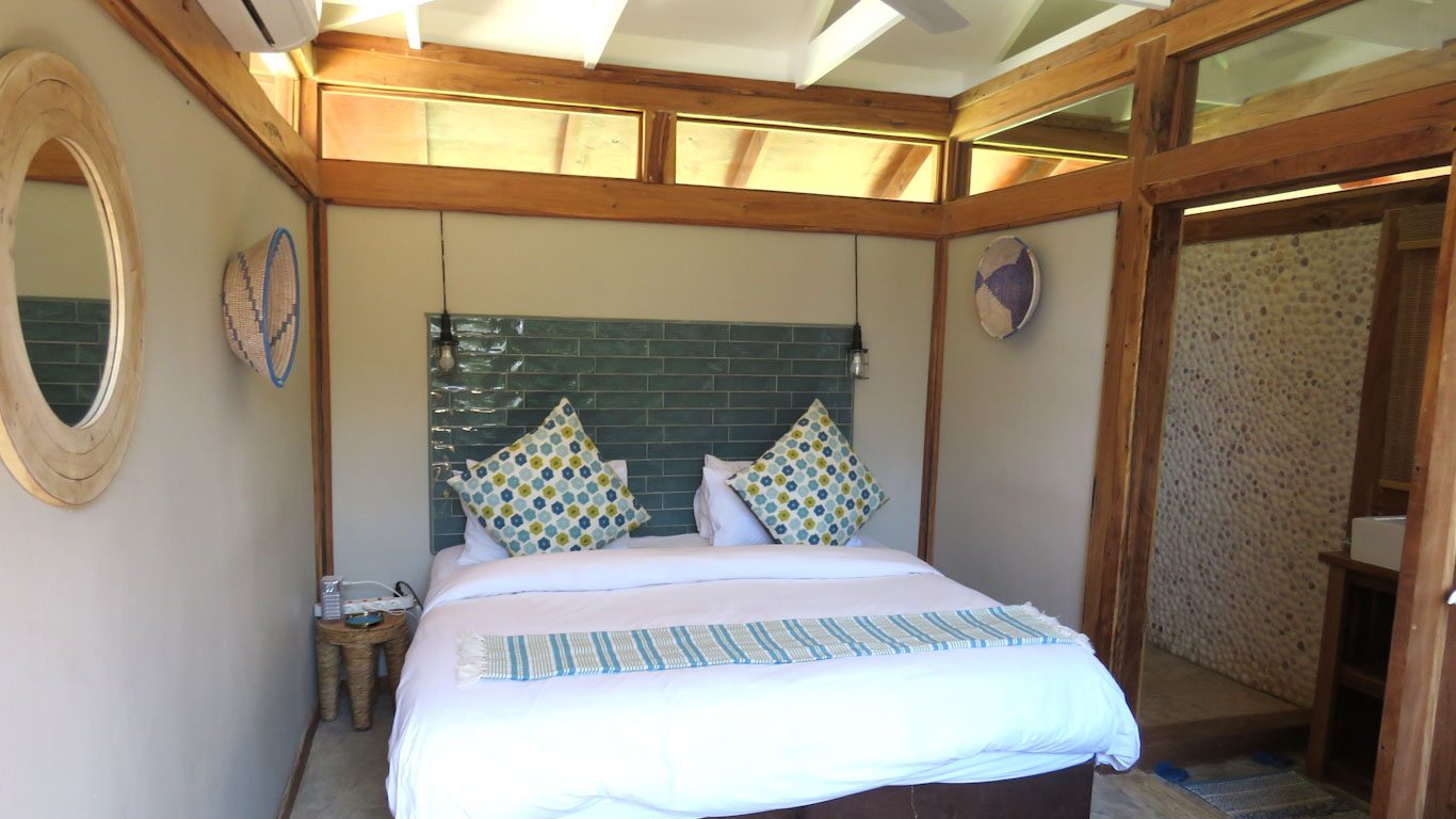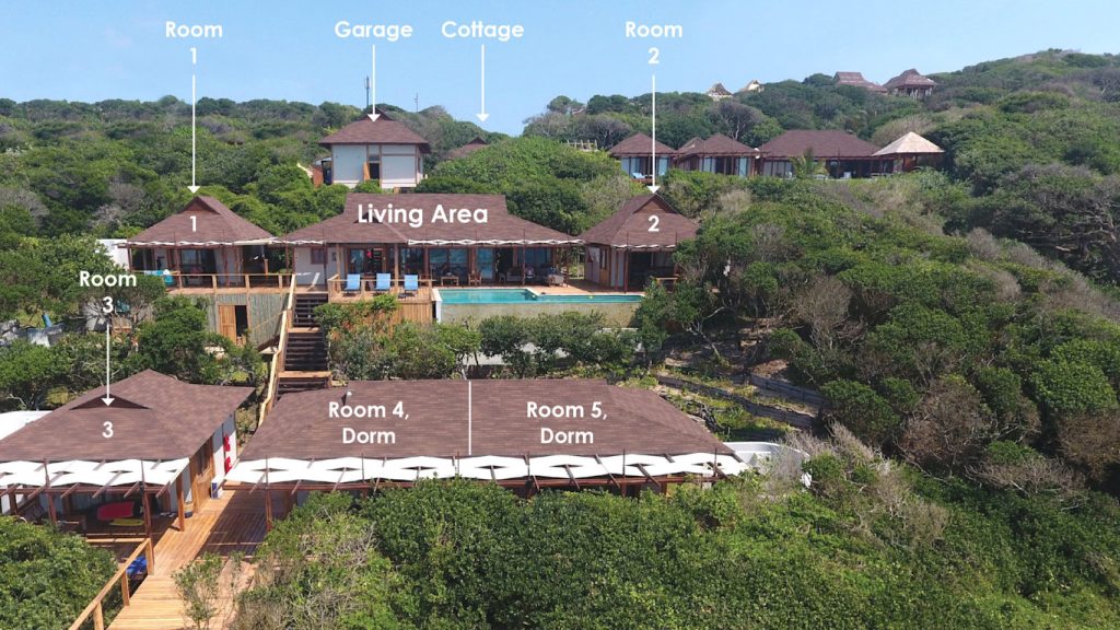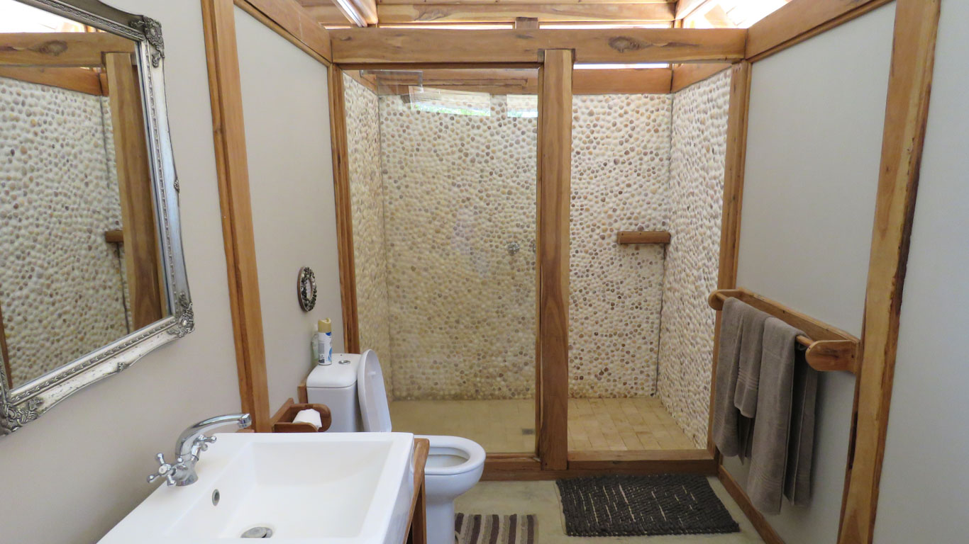 Aloha 16 features five generously sized bedrooms. Each bedroom comes with its own en-suite bathroom, air conditioning for those warm Ponta Mamoli nights, and private outdoor showers. You’ll find plenty of storage space for your belongings, with open shelves for hanging and folded clothing. And yes, beach and bath towels are provided for your convenience.
