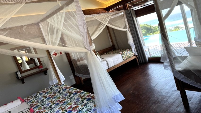 Each of the 4 bedrooms have an en-suite bathroom with a shower, ceiling fan, air-con and are accessible from the outside deck.