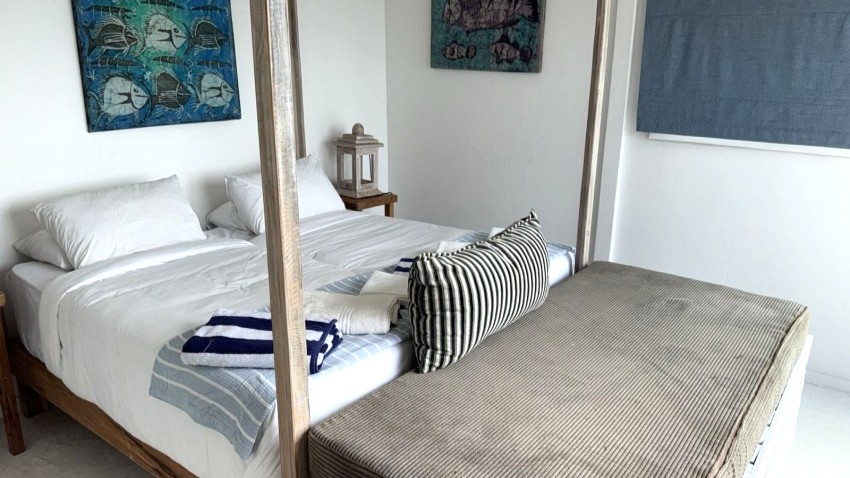This relaxed beach house can accommodate 8 people in 4 air-conditioned, en-suite bedrooms. In addition, there is a loft room with a king size bed for 2 additional guests. Guests staying in this room can make use of the guest bathroom downstairs.